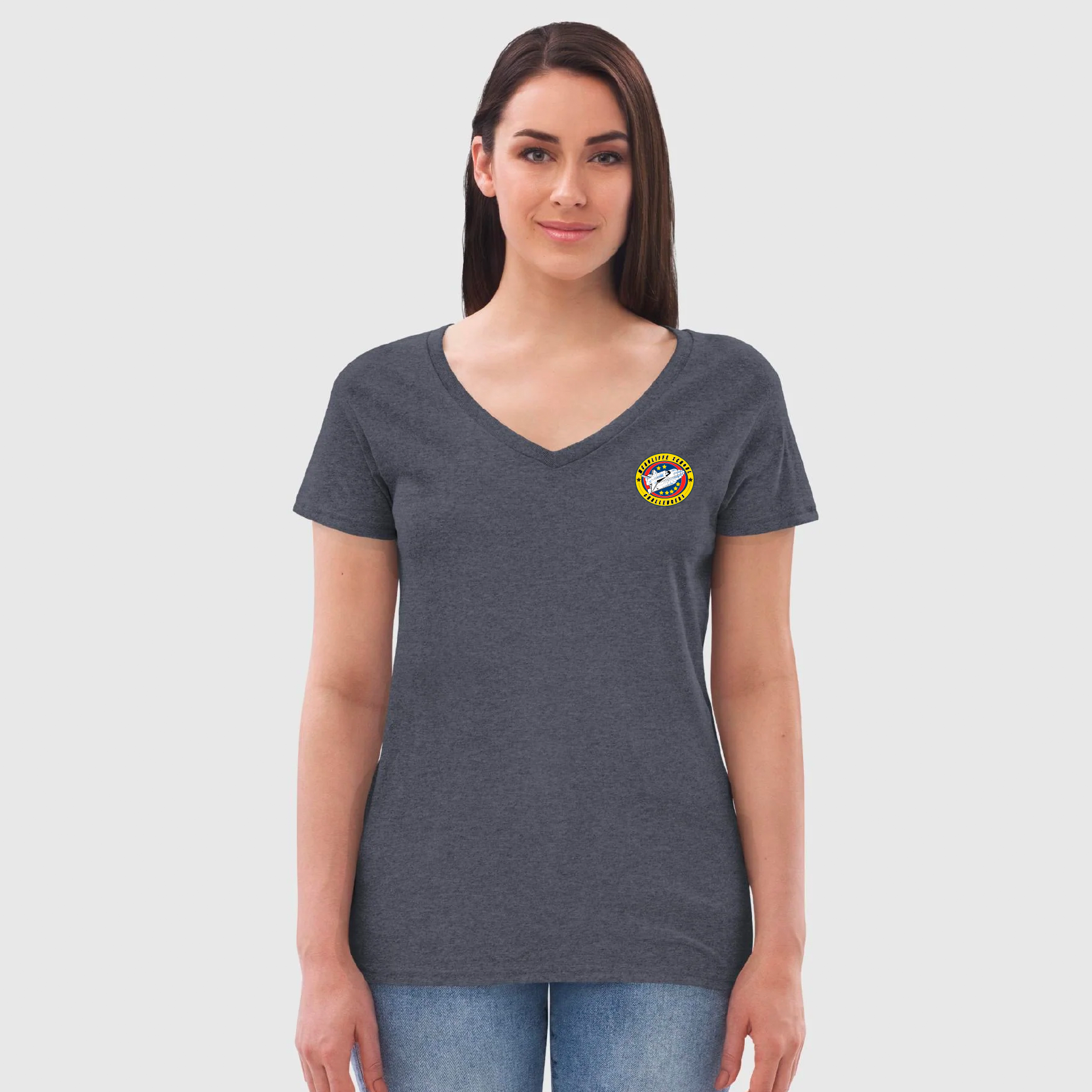 Choose the soft and comfy recycled women’s v-neck with a feminine, relaxed fit. The shirt’s made from 100% recycled fabric and is the perfect eco-friendly choice.